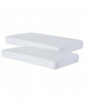 SafeFit™ elastic fitted, 100% cotton sheets use an extra heavy-duty elastic "shower cap" design to ensure retention to mattress and durability throughout heavy laundering. Fits 1" - 4" compact mattresses. Sold as a pack of 2 fitted sheets.