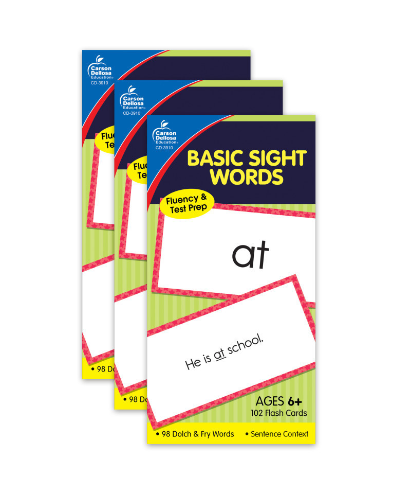 Whether at school, at home, or on the go, educational flash cards are an excellent way to introduce new language arts skills, reinforce memorization, and support good study habits. Each two-sided card set features rounded corners for easy sorting and includes 102 set cards (6" x 3" each) and 1 activity card. Sold as 3 identical packs of flash cards.