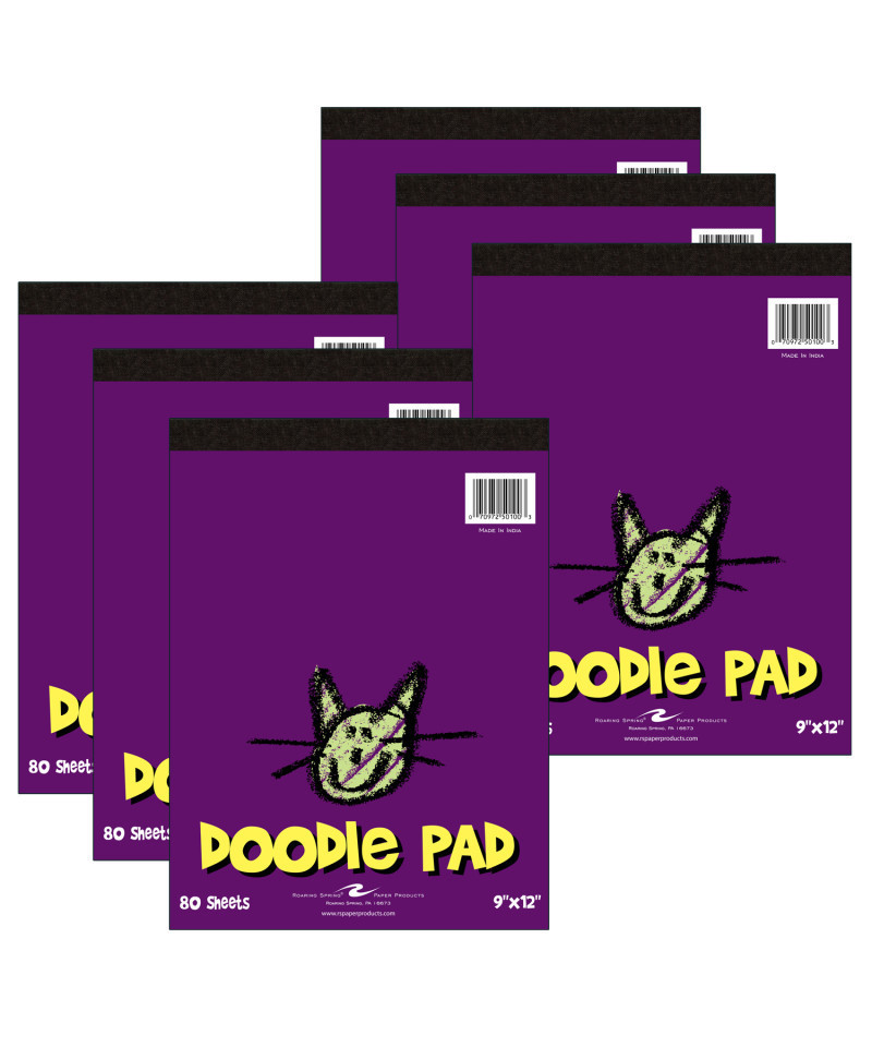 This 9" x 12" Kid's Doodle Pad contains 80 sheets of white newsprint. The top binding makes it easy to tear sheets out, an ensures the book is easy to use for both left and right handed children. This Doodle Pad is perfect for art projects at home or school. Sold as a pack of 6 pads.