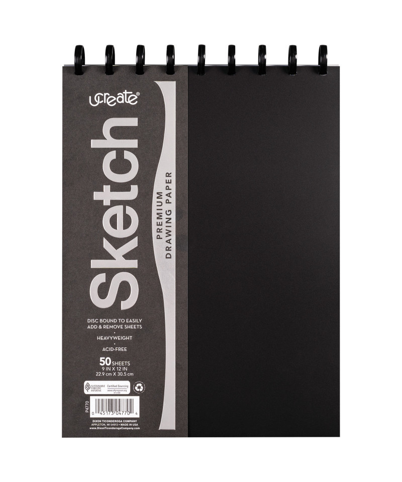 This sketch book is disc bound at the top and can easily be used by both left and right-handed artists. This sketch book has the ability to move, remove and replace pages using the unique disc binding system. The heavyweight paper has a medium tooth and is perfect for all dry media. Acid free. Recyclable. Each book measures 9" x 12" and includes 50 sheets.