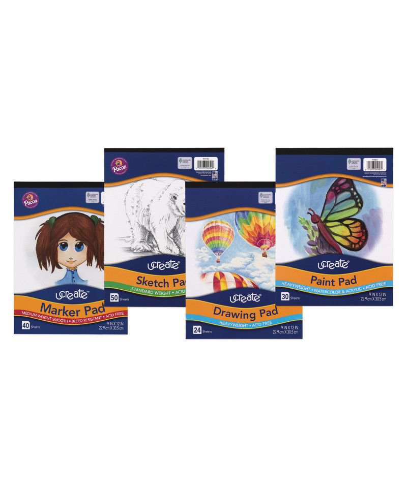 Unleash creativity with this Art Pad Bundle, perfect for both home and classroom use! This versatile set includes four different art pads designed for a variety of artistic mediums: a 50-sheet Sketch Pad, a 24-sheet Drawing Pad, a 30-sheet Paint Pad, and a 40-sheet Marker Pad. Whether using wet or dry media, artists of all skill levels can explore their creativity with confidence. Each pad features a tape-bound top and a sturdy chipboard backing for durability and ease of use. Plus, the acid-free, recyclable paper ensures long-lasting artwork while being environmentally friendly. With 144 total sheets of student-quality paper, this bundle is an essential addition to any art collection.
