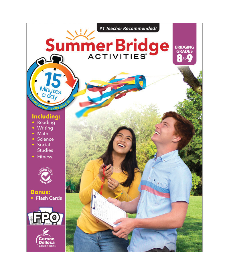 Summer Bridge Activities: Bridging Grades 8-9 gives students a head start for their ninth-grade year. Review eighth-grade skills such as square roots and conducting research for writing while preparing for ninth-grade skills such as algebra and writing informative texts.