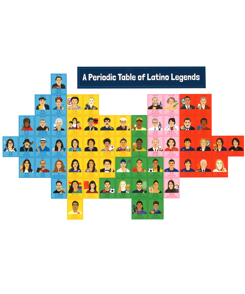• 1 periodic table, assembled from 11 pieces, featuring 60 inspiring people: Artists & Performers, Athletes, Activists & Advocates, Scientists & Mathematicians, Trailblazers (largest: 16.5" 21.4"; smallest: 16.5" x 21.4")
