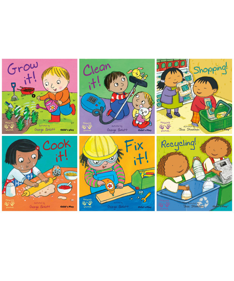 Helping with real tasks is a natural progression from pretend play, and is a crucial stage in a child's development. Achieving a shared goal encourages a sense of responsibility, and develops many skills useful in later life. Simple conversational text and lively illustrations are carefully designed to encourage further dialogue between reader and child. Six titles include: Clean It!, Cook It!, Grow It!, Fix It!, Shopping!, and Recycling! Each book has 24 pages.