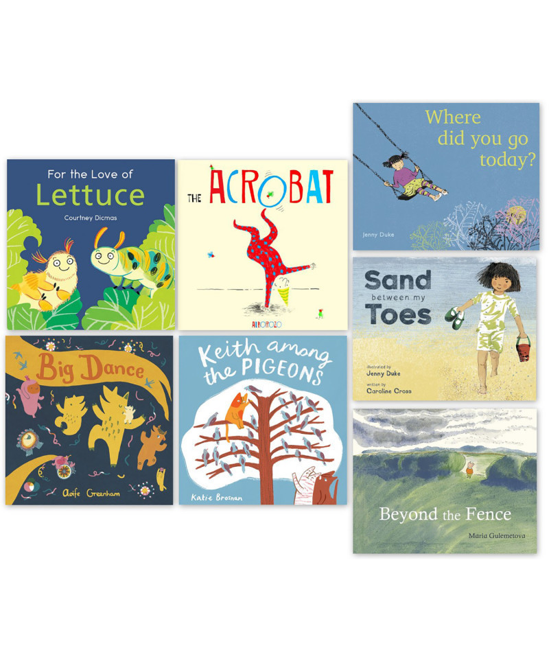 Each 7 book set consists of: Big Dance, Keith Among Pigeons, The Acrobat, For the Love of Lettuce, Where Did You Go Today?, Beyond the Fence, Sand Between My Toes.