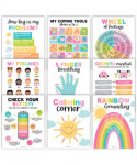 This toddler mood chart set includes 9 different 11x14 self regulation posters, so children will finally have the tools needed to handle negative emotions in a positive way! These green social emotional posters are a great way to help children replace stress and anger with a calm mind, and these social skills posters for classroom walls also help kids develop lifelong coping strategies to manage big feelings constructively. Our educational charts & posters are USA made, so this positive affirmations for kids feelings wheel chart poster set will last for years.