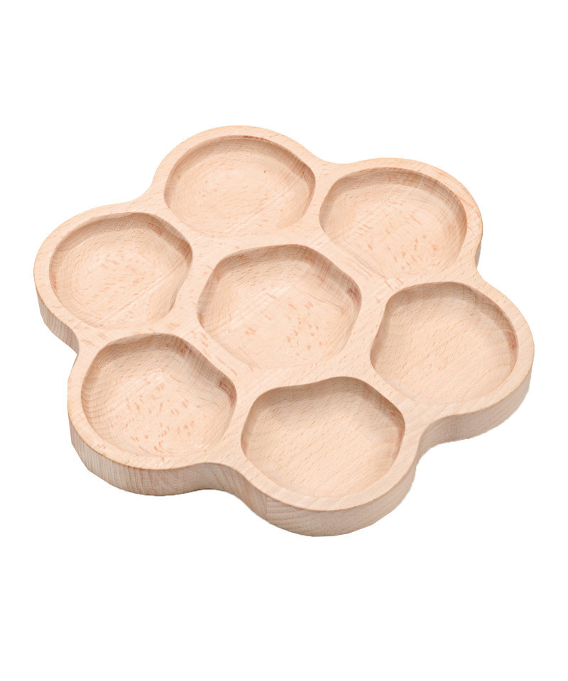 Beautifully made from FSC beech, this tactile natural wood tray is instantly appealing to young investigators. With six outside petals and a central area, it is ideal for all kinds of collecting, counting, sorting and loose parts activities. The sections are just waiting to be filled with treasures to display and discover. Measures 9-1/4". Age 18+ months.