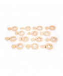 This set comes with 14 smooth birch plywood disks. Each disk features a removable shape cutout. There are 7 mathematical shapes (circle, oval, semicircle, triangle, square, rectangle and hexagon) and 7 environmental shapes (mushroom, star, keyhole, crown, cross, flower and heart). Use these disks to practice sorting, matching, shape recognition, spatial reasoning and more. Help children explore the difference between regular and irregular shapes while using descriptive language, concentration, fine motor skills and critical thinking. Children can also use these shapes for drawing and tracing. They chunky and easy for small hands to manipulate. Made from quality birch plywood, these disks are designed to last for years of home or classroom use. The set also comes with a drawstring bag and an activity guide. For ages 12m+. Size of disks: 2.6"L x 0.5"H.