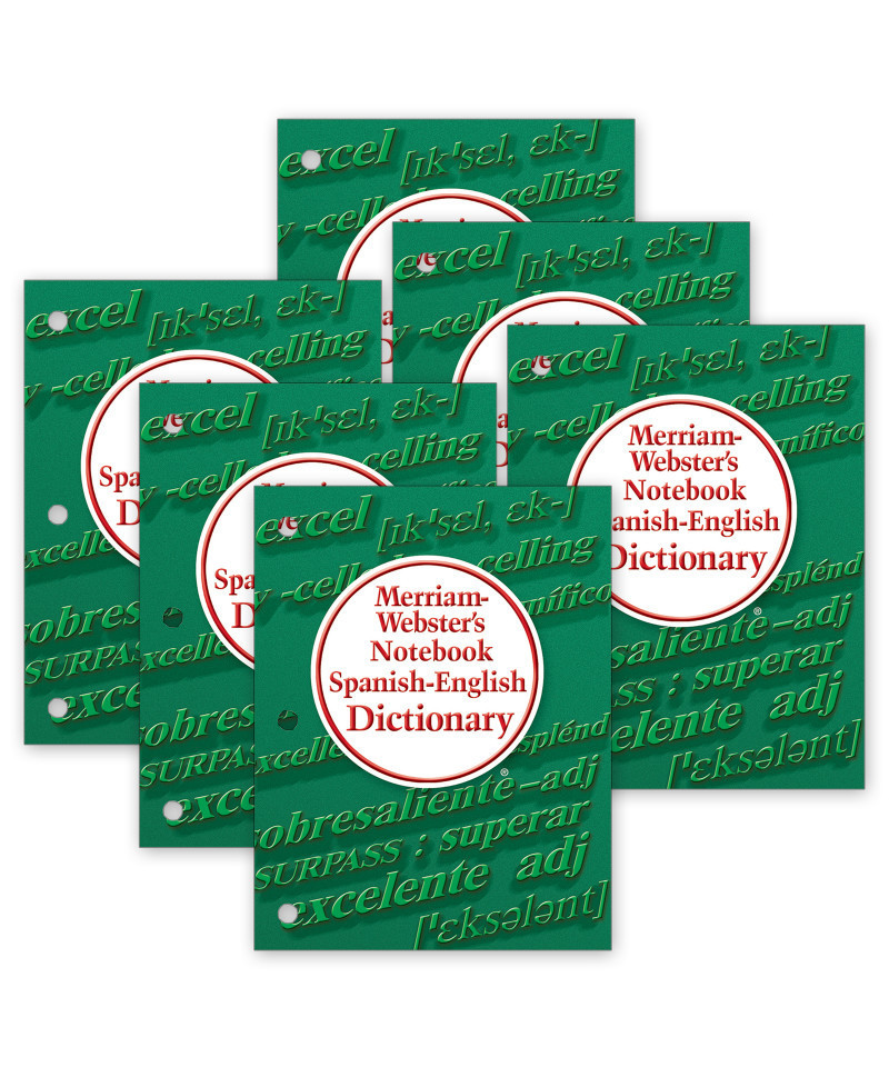 The Merriam-Webster's Notebook Spanish-English Dictionary is a quick-reference, bilingual and bidirectional guide to Spanish and American English, designed for 3-ring binders. Especially for students grades 5 and up. Nearly 45,000 entries with coverage of Latin American Spanish. Includes concise definitions, pronunciations, and examples of words used in context. Special sections include Metric System Conversions, Spanish and English Numbers, Common Spanish and English Abbreviations, Irregular English Verbs, and Nations of the World. Includes 112 pages. Measures 8.5" x 10.875". Paperback, 3-hole punched binding. Sold as a pack of 6 dictionaries.