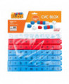 CVC Blox from Phonics Blox are color-coded and turnable word building cubes. This set includes 40 consonants and 20 short vowel blox. The turnability supports the development of phonemic awareness as students can twist a letter around to change the sound and meaning of the word (for example: change hat to hot to hit...). 10 picture blox are also included to support students with consonant vowel consonant words.