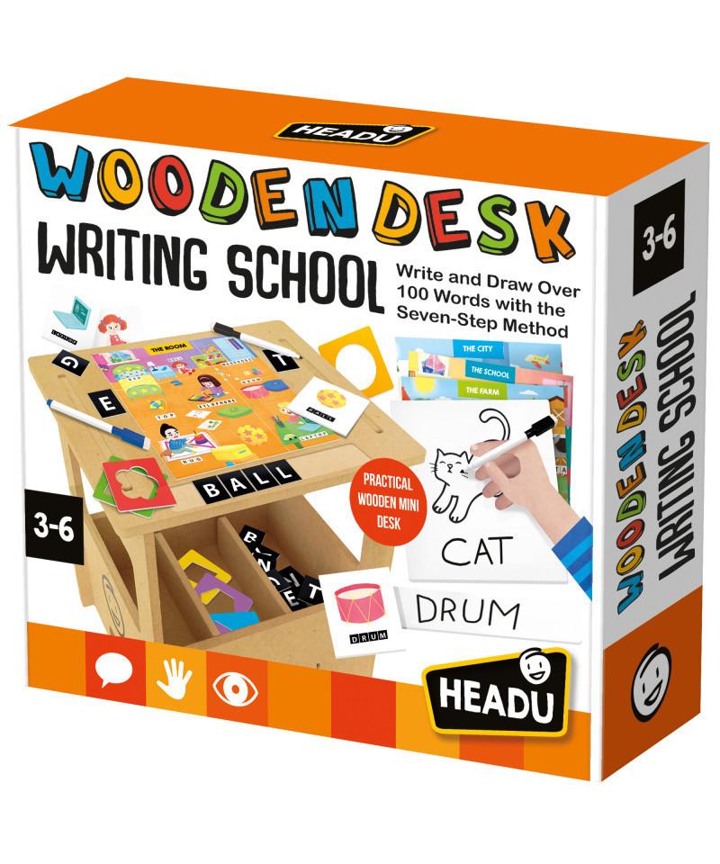 The practical wooden desk is designed for preschool children, empowering them to engage in independent learning activities. With the inclusion of over 100 words, the desk offers a hands-on, seven-step method for children to learn writing, drawing, and reading. The set includes a wooden desk, lexical scenes, movable letters, shape stencils, a writing insert, a whiteboard, and dry-erase markers, ensuring interactive and fun learning. Perfect for ages 3-6, this educational tool fosters essential early literacy and writing skills.