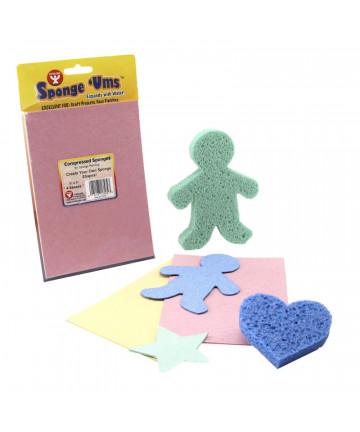 Captain Creative Super Sponges are made of real cellulose sponge material and they are one inch thick. It is best to rinse and wash the sponges before the first use and for every use after that. Each pack will contain a variety of shapes, colors, sizes and quantities with no two packs typically the same. Super Sponges are great for sponge painting, sand and water tables, and bath time. Super Sponges are 1" thick and made of cellulose sponge material perfect for sponge painting and water play. The sponges are not made for children under the age of 3 years old.