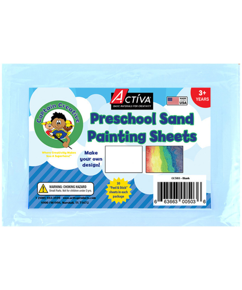 Blank Preschool Sand Sheets by Captain Creative give young artists the freedom to create their own sand art designs from scratch. This set includes 30 blank sand art sheets, allowing children to draw, imagine, and decorate their own pictures using colored sand. Each sheet measures 5x7 inches, making them easy for small hands to handle during art time.Perfect for classrooms, daycare centers, homeschool activities, and at-home creative play, these blank sand sheets encourage open-ended creativity and self-expression. As children design and decorate their own images, they build fine motor skills, focus, and confidence while enjoying a tactile, screen-free activity. Whether used for free art exploration, themed lessons, or group projects, these blank sand sheets offer endless creative possibilities for preschool learners.