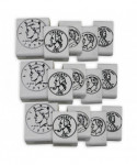 Decorate DIY projects or create early math activities with Coin Stamps! Each set includes 5 wooden stamps with detailed rubber imprints of the heads side of the penny, nickel, dime, quarter and half dollar. Use them to decorate scrapbooks, albums or invitations! Or, create coin identification, addition or subtraction activities of your own. These chunky, wooden stamps are easy for children to use. As children stamp, they will develop fine motor skills, hand-eye coordination an imagination. These stamps can be cleaned with warm soap and water, which makes them an ideal home or classroom accessory! Size of dime stamp: 1.4"L x 1.2"W x 0.9"H. Size of half dollar stamp: 1.2"L x 0.75"W x 0.9"H. Each set includes 5 stamps. Sold as 3 sets for a total of 15 stamps.