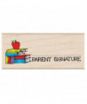 This stamp features a stack of books with an apple on top and a line for parent signature.