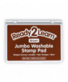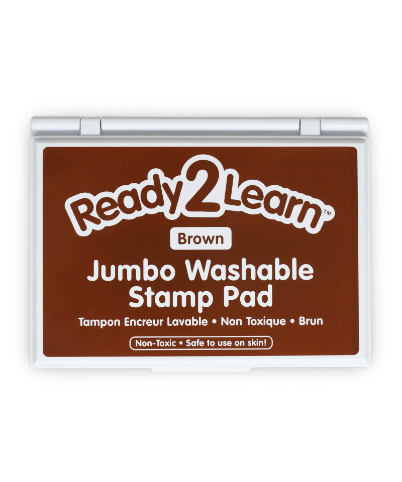 This large brown stamp pad contains washable, non-toxic ink. Washable stamp pads offer a variety of creative possibilities with easy cleanup! The ink is safe for hand and finger stamping and washes off skin and most clothing with warm, soapy water. The quick-drying, fade-resistant ink is also acid-free for archival quality. The raised pad means there are no hard edges around the ink. Children can press down without hitting an edge, which provides more area for stamping. The brown ink in this stamp pad presents crisp, vivid images when stamped. Stamping is a fun way to develop fine motor skills and foster creative expression. The ink pad is packaged in a plastic case with a flip cover to prevent it from drying out. For ages 3+. Size of ink pad: 6.2"L x 4.1"W. Size of entire stamp pad (with plastic casing): 6.7"L x 4.9"W x 0.75"H.