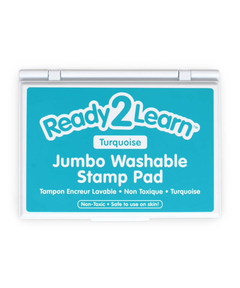 This large turquoise stamp pad contains washable, non-toxic ink. Washable stamp pads offer a variety of creative possibilities with easy cleanup! The ink is safe for hand and finger stamping and washes off skin and most clothing with warm, soapy water. The quick-drying, fade-resistant ink is also acid-free for archival quality. The raised pad means there are no hard edges around the ink. Children can press down without hitting an edge, which provides more area for stamping. The turquoise ink in this stamp pad presents crisp, vivid images when stamped. Stamping is a fun way to develop fine motor skills and foster creative expression. The ink pad is packaged in a plastic case with a flip cover to prevent it from drying out. For ages 3+. Size of ink pad: 6.2"L x 4.1"W. Size of entire stamp pad (with plastic casing): 6.7"L x 4.9"W x 0.75"H.
