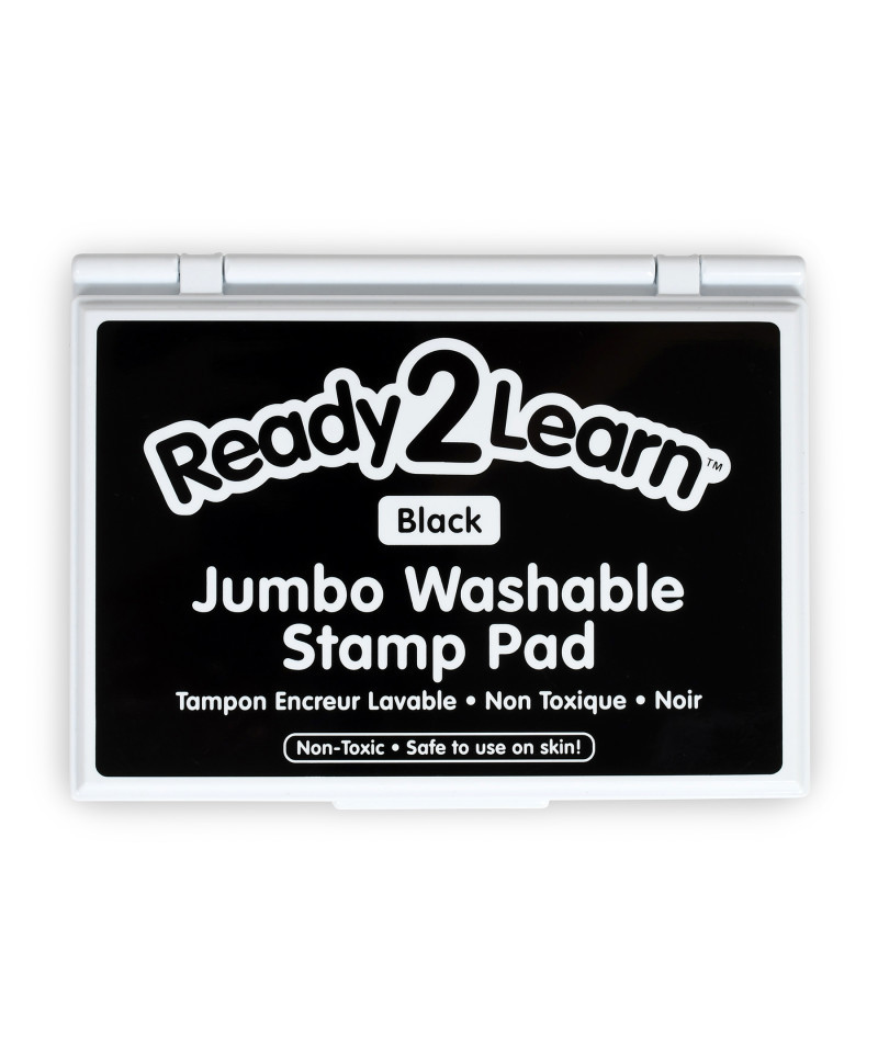 This large black stamp pad contains washable, non-toxic ink. Washable stamp pads offer a variety of creative possibilities with easy cleanup! The ink is safe for hand and finger stamping and washes off skin and most clothing with warm, soapy water. The quick-drying, fade-resistant ink is also acid-free for archival quality. The raised pad means there are no hard edges around the ink. Children can press down without hitting an edge, which provides more area for stamping. The black ink in this stamp pad presents crisp, vivid images when stamped. Stamping is a fun way to develop fine motor skills and foster creative expression. The ink pad is packaged in a plastic case with a flip cover to prevent it from drying out. For ages 3+. Size of ink pad: 6.2"L x 4.1"W. Size of entire stamp pad (with plastic casing): 6.7"L x 4.9"W x 0.75"H.