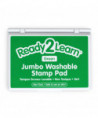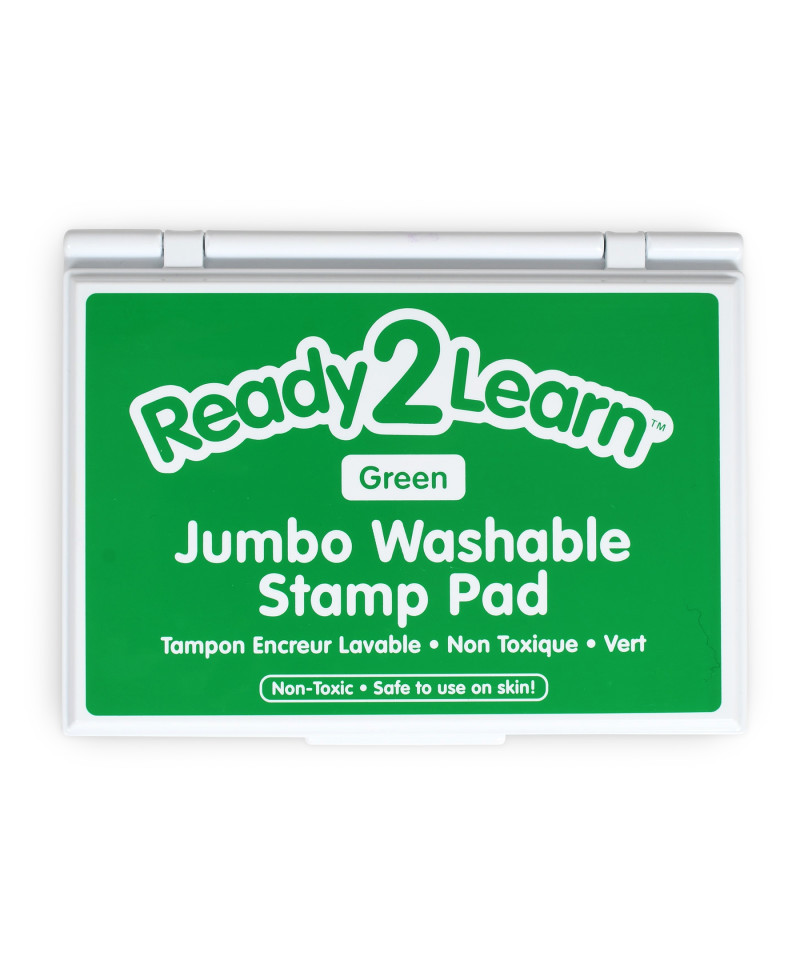 This large green stamp pad contains washable, non-toxic ink. Washable stamp pads offer a variety of creative possibilities with easy cleanup! The ink is safe for hand and finger stamping and washes off skin and most clothing with warm, soapy water. The quick-drying, fade-resistant ink is also acid-free for archival quality. The raised pad means there are no hard edges around the ink. Children can press down without hitting an edge, which provides more area for stamping. The black ink in this stamp pad presents crisp, vivid images when stamped. Stamping is a fun way to develop fine motor skills and foster creative expression. The ink pad is packaged in a plastic case with a flip cover to prevent it from drying out. For ages 3+. Size of ink pad: 6.2"L x 4.1"W. Size of entire stamp pad (with plastic casing): 6.7"L x 4.9"W x 0.75"H.