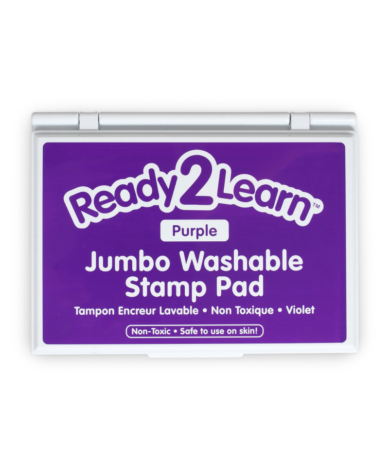 This large purple stamp pad contains washable, non-toxic ink. Washable stamp pads offer a variety of creative possibilities with easy cleanup! The ink is safe for hand and finger stamping and washes off skin and most clothing with warm, soapy water. The quick-drying, fade-resistant ink is also acid-free for archival quality. The raised pad means there are no hard edges around the ink. Children can press down without hitting an edge, which provides more area for stamping. The black ink in this stamp pad presents crisp, vivid images when stamped. Stamping is a fun way to develop fine motor skills and foster creative expression. The ink pad is packaged in a plastic case with a flip cover to prevent it from drying out. For ages 3+. Size of ink pad: 6.2"L x 4.1"W. Size of entire stamp pad (with plastic casing): 6.7"L x 4.9"W x 0.75"H.