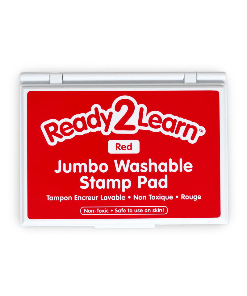 This large red stamp pad contains washable, non-toxic ink. Washable stamp pads offer a variety of creative possibilities with easy cleanup! The ink is safe for hand and finger stamping and washes off skin and most clothing with warm, soapy water. The quick-drying, fade-resistant ink is also acid-free for archival quality. The raised pad means there are no hard edges around the ink. Children can press down without hitting an edge, which provides more area for stamping. The black ink in this stamp pad presents crisp, vivid images when stamped. Stamping is a fun way to develop fine motor skills and foster creative expression. The ink pad is packaged in a plastic case with a flip cover to prevent it from drying out. For ages 3+. Size of ink pad: 6.2"L x 4.1"W. Size of entire stamp pad (with plastic casing): 6.7"L x 4.9"W x 0.75"H.