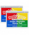 This large stamp pad contains red, yellow, blue and green ink pads within one case. Washable stamp pads offer a variety of creative possibilities with easy cleanup! The ink washes off fingers and most clothing with warm, soapy water. The quick-drying, fade-resistant ink is also acid-free for archival quality. The raised pad means there are no hard edges around the ink. Children can press down without hitting an edge, which provides more area for stamping. The red, yellow, blue and green ink in this stamp pad presents crisp, vivid images when stamped. Stamping is a fun way to develop fine motor skills and foster creative expression. The ink pads are packaged in a plastic case with flip cover to prevent them drying out. For ages 3+. Size of each color: 3.2"L x 2"W. Size of entire stamp pad (with plastic casing): 6.7"L x 4.9"W x 0.75"H. Sold as a pack of 2 stamp pads.