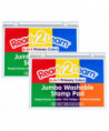 This large stamp pad contains red, yellow, blue, green, purple and orange ink pads within one case. Washable stamp pads offer a variety of creative possibilities with easy cleanup! The ink washes off fingers and most clothing with warm, soapy water. The raised pad means there are no hard edges around the ink. Children can press down without hitting an edge, which provides more area for stamping! The quick-drying, fade-resistant ink is also acid-free for archival quality. The red, yellow, blue, green, purple and orange ink in this stamp pad presents crisp, vivid images when stamped. Stamping is a fun way to develop fine motor skills and foster creative expression. The ink pads are packaged in a plastic case with a flip cover to prevent them from drying out. For ages 3+. Size of each color: 3"L x 2"W. Size of entire stamp pad (with plastic casing): 6.7"L x 5"W x 0.75"H. Sold as a pack of 2 stamp pads.
