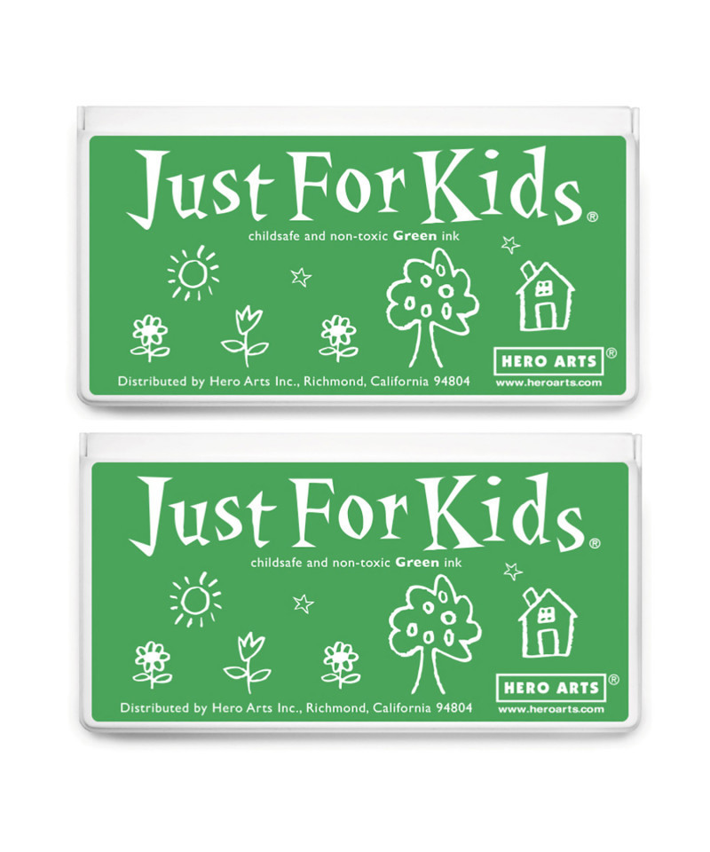 The Just for Kids ink you love, in a larger pad. Use this green ink for all your kid-approved crafting. Measuring 6.5" x 3.5", Jumbo Just For Kids ink pads are specially formulated with non-toxic ingredients approved by the FDA for use by children. Just for Kids ink pads are quick-drying, non-solvent, water-based, non-toxic, and child safe. Conforms to ASTM-D4236. Made in the USA. For best results, store ink pads flat in a cool and dry location. Sold as a pack of 2.