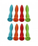 - 4 DIFFERENT SHAPES -- Sold as 2 sets, each stamp set includes 4 long, triangular handles with different raised patterns on one end: flower, splash, spiral and star.