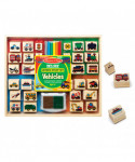 - 38-piece deluxe vehicle-themed wooden stamp and coloring set from Melissa & Doug