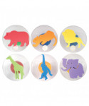 Create safari scenes and decorate DIY projects with these Giant Wild Animal Stampers! This 6-piece set includes 6 different animal-themed stamps: bear, lion, giraffe, ape, leopard and elephant. Each stamp features a large foam shape mounted on a 3" disc for stability. The chunky, rounded handles provide greater comfort and control. Ideal for DIY projects and art and craft time, these giant stampers assist in developing fine motor skills and creativity. Size: 1.9"H x 3" dia.