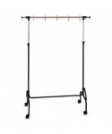 This versatile steel chart stand adjusts to hold both pocket and flip charts. Features sturdy locking casters and 5-ring style hooks for hanging. The height adjusts from 50" to 80" and the length from 35" to 74" for maximum display space. Easy to assemble.