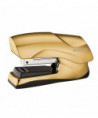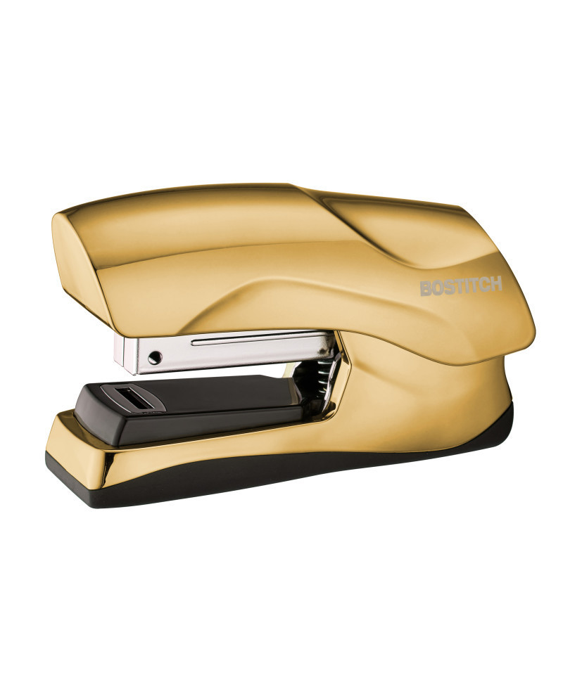 This metallic gold flat clinch stapler features a half strip design while retaining all the stapling power of a heavy duty, full-sized stapler. This stylish and trendy stapler can also staple up to 40 sheets of paper at once! Most standard handheld staplers can only handle 20 sheets at a time. This unit also features a convenient flat clinch stapling style. Flat clinch staplers allow documents to lay in flatter, neater stacks. You can keep your papers organized and your desktop clean with the help of this compact stapler. Perfect for any desk in your home office or business, this lavish gold stapler will be one of the best-looking office supplies around! Additionally, this beautiful stapler opens a full 180 degrees for bulletin board use and features non-skid, rubber base. Just add your Bostitch standard staples and you're ready to tackle all the stapling and filing projects ahead.