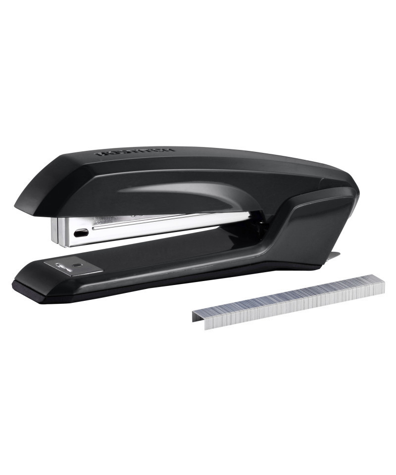 This ergonomically designed stapler features an extremely comfortable yet stylish shape. The soft rubber grip and base provide an optimum grip for easy stapling and maximum control. The StapleStore compartment keeps extra staples close at hand, located at the bottom of the stapler. The built in stapler remover gives convenient staple removal. This stapler can staple up to 20 sheets. It can effortlessly be opened for bulletin tacking and craft applications.
