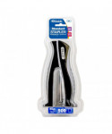 - JAM-FREE. Designed for handheld stapling. Stands vertically for easy access & space-saving storage. Curved, ergonomic shape fits comfortably in the palm of your hand