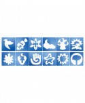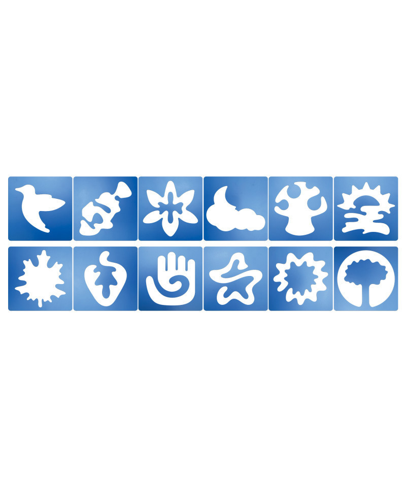 - Includes 12 stencils measuring 8" (20cm) square.