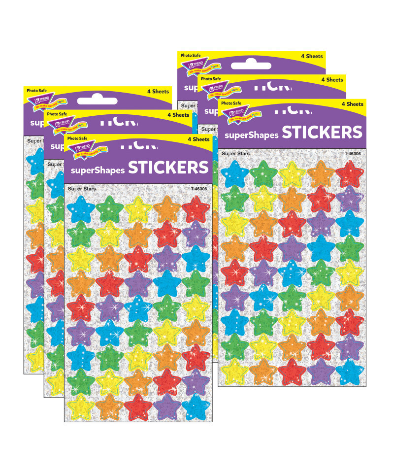 Shine bright with classic stars everybody loves! Use to brighten up envelopes and cards, add sparkle to scrapbooks, and more. Acid free, nontoxic, and safe for use on photos. Each pack includes 180 stickers in 6 colors (blue, red, yellow, green, orange, purple). Sold as 6 packs for a total of 1080 stickers.