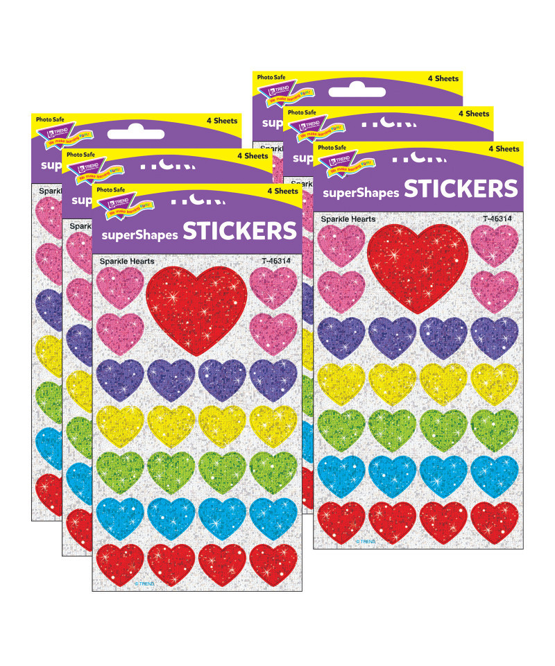 Shine bright with classic hearts everybody loves! Use to brighten up envelopes and cards, add sparkle to scrapbooks, and more. Acid free, nontoxic, and safe for use on photos. Each pack includes 100 stickers in 6 colors (blue, red, yellow, green, purple, pink). Sold as 6 packs for a total of 600 stickers.