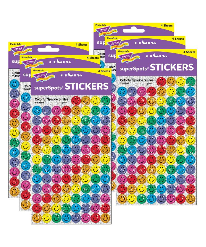 Colorful smiles are enduring classics for all ages. Perfect for homework, Incentive Pads and Charts, and more. Kids love them for trading and collecting, too. Each pack contains 400 stickers in 7 colors (blue, red, yellow, green, orange, purple, pink). Sold as 6 packs for a total of 2400 stickers.