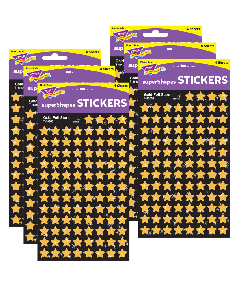 Shiny Stars—a time-honored way to mark success! These chart-sized stickers are perfect for Trend's Incentive Pads. Acid-free, non-toxic, and safe for use on photos. 400 stickers per pack. Sold as 6 packs, 2400 stickers total.