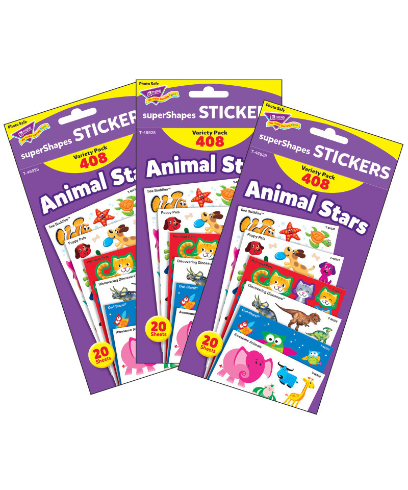 Handy favorites! superShapes Stickers provide extra value in every pack. Acid free, nontoxic, and photo safe. Each pack contains 20 sheets, 408 stickers, 115 designs. Sold as 3 packs for a total of 1224 stickers.