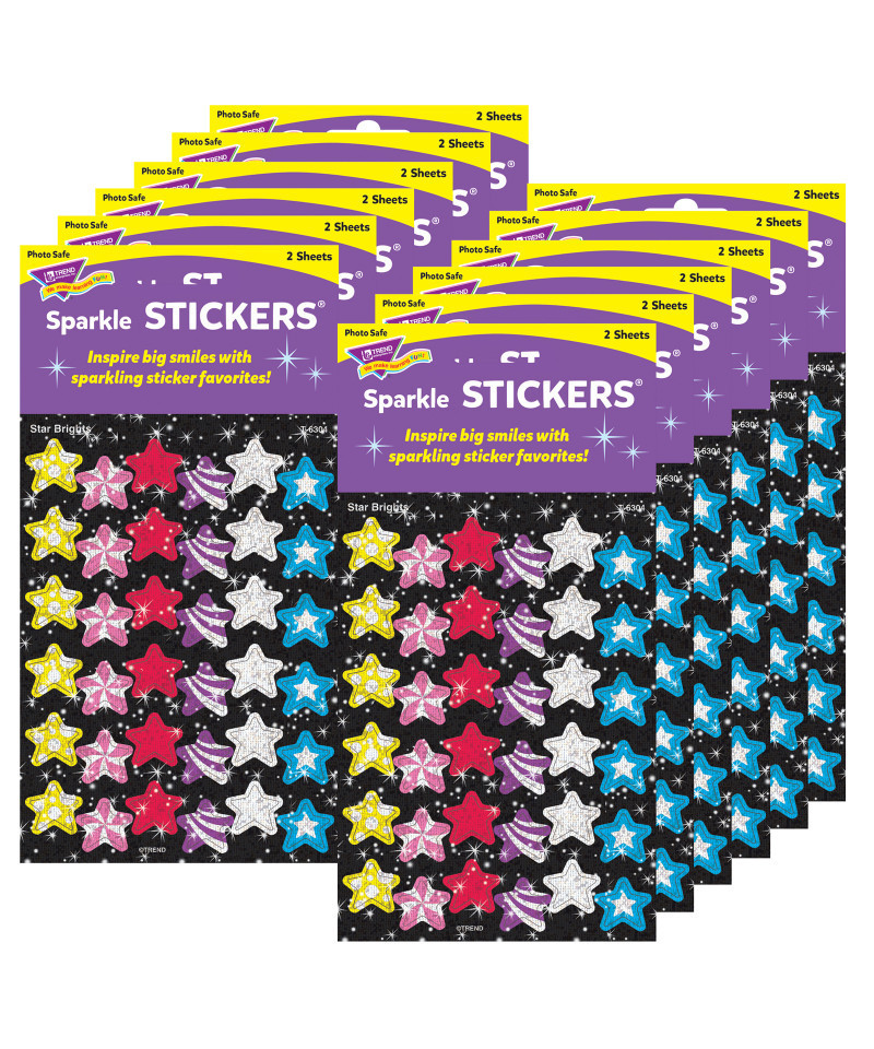 Little sparklers are a big hit with kids! They're just the right size to put on homework and reward good behavior. They are acid free, nontoxic, and safe for use on photos. 6 designs, 72 stickers per pack. Sold as 12 packs for a total of 864 stickers.