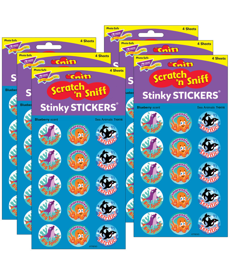 Everyone's favorite stickers! Stinky Stickers are fun to collect and trade, provide encouragement, and celebrate success. Acid free, nontoxic, and safe for use on photos. Includes 3 fun designs for sticker lovers of all ages. 3 designs, 60 stickers per pack. Sold as 6 packs for a total of 360 stickers.