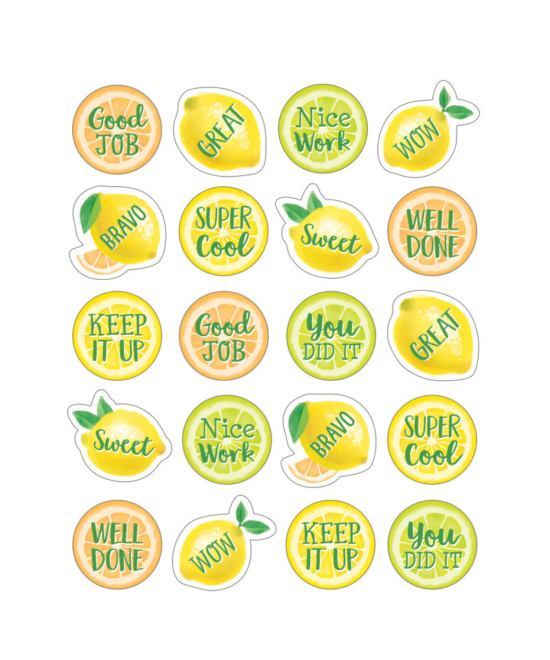 These Lemon Zest inspirational stickers are acid-free and lignin-free. Stickers are great for rewards, encouragement, prizes, arts and crafts, incentive charts and more. Measure approximately 1". Each pack includes 120 stickers in 10 designs.