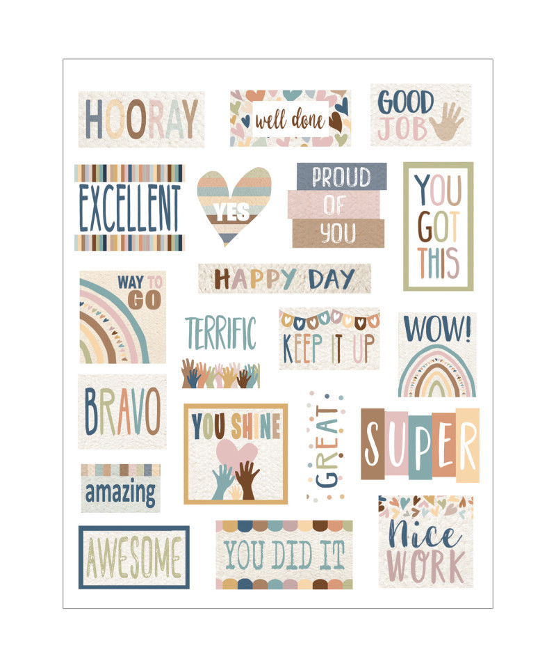 These cute, colorful stickers featuring inspirational messages help spotlight good behavior, boost motivation, and make good habits stick! Great on homework, incentive charts, and more. These stickers are nontoxic, acid-free and photo-safe. Stickers vary from about 1-3/4" to 1/2". Each pack includes 120 stickers in 20 designs.