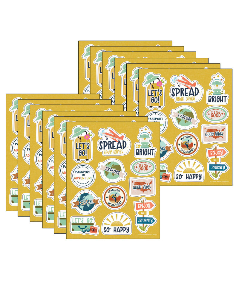 Carson Dellosa's Let's Explore Think Positive Motivational Stickers inspire students to keep up the good work. Each sticker pack includes 6 sheets that feature inspirational quotes such as "PASSPORT TO ADVENTURE", "ENJOY THE JOURNEY", "WANDER & WONDER", "SPREAD YOUR WINGS", and more. Acid-free and lignin-free, these stickers are great for encouraging students and rewarding them on a job well done. Stickers are also great for scrapbooking and photo projects, enhancing assignments, goodie bag gifts, and much more. Education happens everywhere, and Carson Dellosa strives to provide the tools needed to inspire learning everywhere it happens. Each pack includes 72 kids stickers. Sold as 12 packs for a total of 864 stickers.