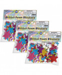 Create sparkly scenes and personalize your stuff with foam stickers! Each sticker pack includes 168 star-shaped stickers in 7 colors and 3 sizes. Colors include silver, gold, green, blue, pink, purple and red. These self-adhesive stickers easily peel away from their wax sheets for frustration-free craft time. These 3D stickers are durable, thick and easy to hold. Use these stickers to decorate DIY projects or personalize water bottles, computers, phones and more! Give these stickers as rewards after chores and homework. Or, use them as party favors and stocking stuffers. Kids will love to collect all the different glitter star stickers! || Size of largest star: 1.6"L || Size of smallest star: 0.6"L. Sold as 3 packs for a total of 504 stickers.