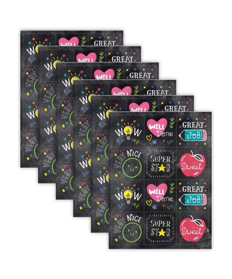 Reward students with these Colorful Chalk Rewards Stickers. Inspirational sayings such as "Well Done," "Great job," "Very Nice," and "Sweet" are paired with bright images on a chalkboard-style background to create motivating reward stickers that will appeal to children of all ages. Measures approximately 1.5" x 1.5". Each pack includes 60 stickers. Sold as 6 packs for a total of 360 stickers.