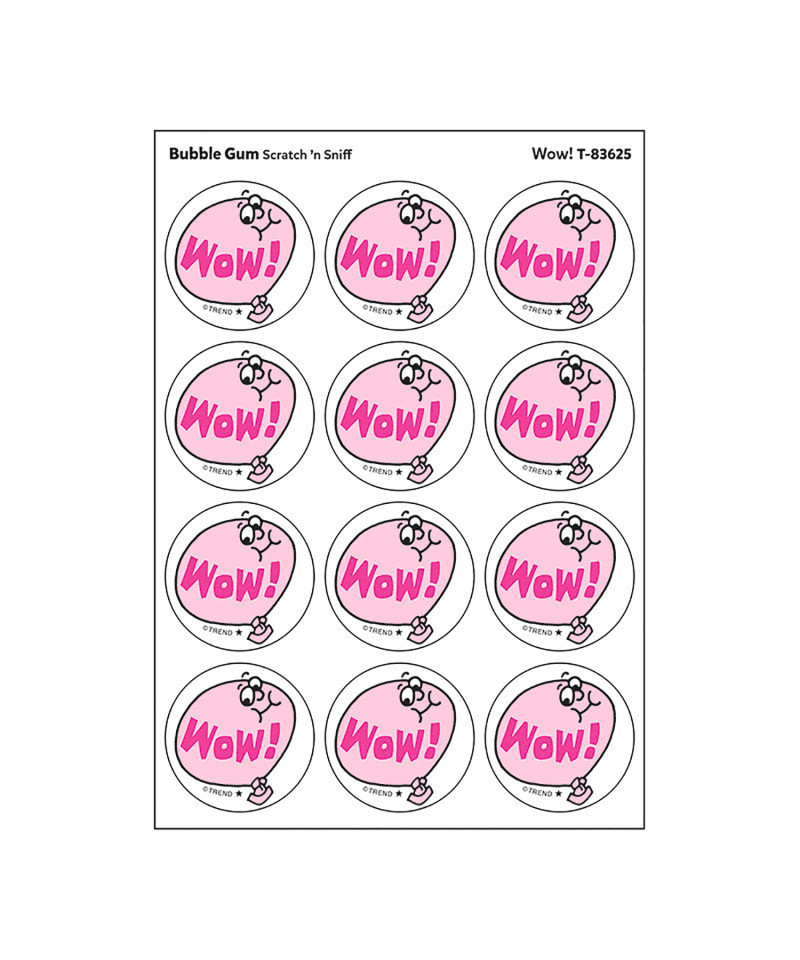Get a whiff of this Wow!, bubble gum-scented sticker! TREND Scratch 'n Sniff Stinky Stickers from the '80s are BACK! Fun to collect, trade, and celebrate accomplishments and special occasions. Collectors will be happy to spot the star symbol to distinguish TREND Retro Stinky Stickers from those printed in the 1980s. Each pack includes 24 stickers on 2 sheets.