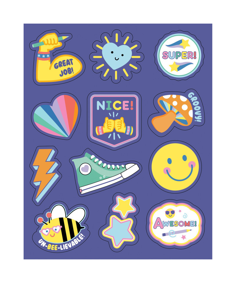 Reward your students for a job well done with Carson Dellosa's We Stick Together Motivational Stickers! Each sticker features a retro design or positive sayings like "Great job!" and "Groovy!" to commend students on their achievements and good behavior. Each pack includes 72 reward stickers on 6 sheets.